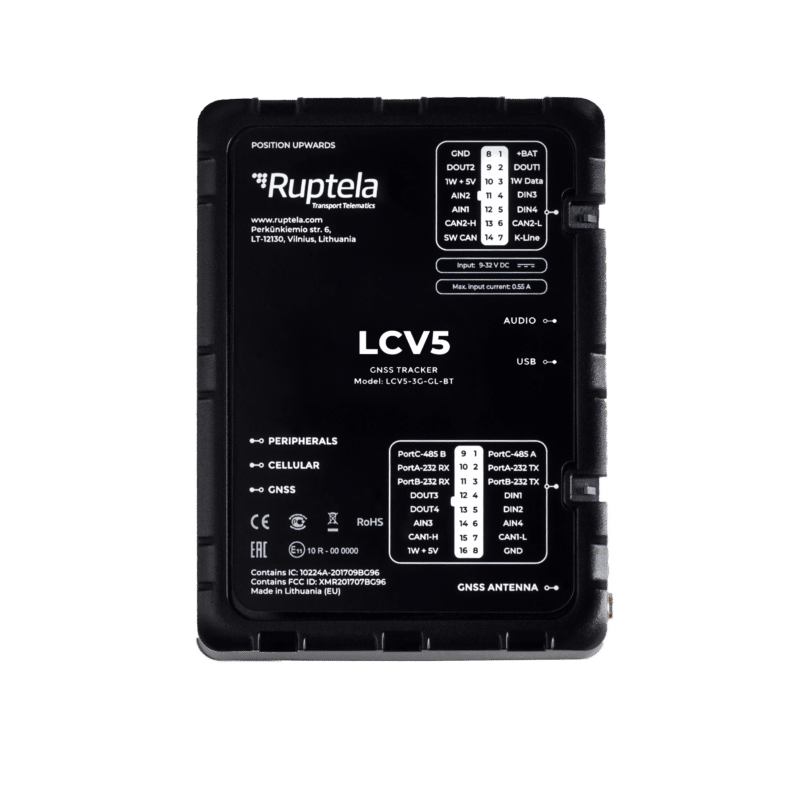 O LCV5 é um rastreador GPS avançado para carros e veículos comerciais leves. O LCV5 foi projetado para rastreamento de veículos e tarefas avançadas – leitura de dados do computador de bordo (CAN), leitura de dados OBD específicos do fabricante, rastreamento do comportamento do motorista, gerenciamento de combustível etc. O dispositivo pode usar redes GSM (2G), LTE Cat M1 (4G) e BLE para se comunicar.